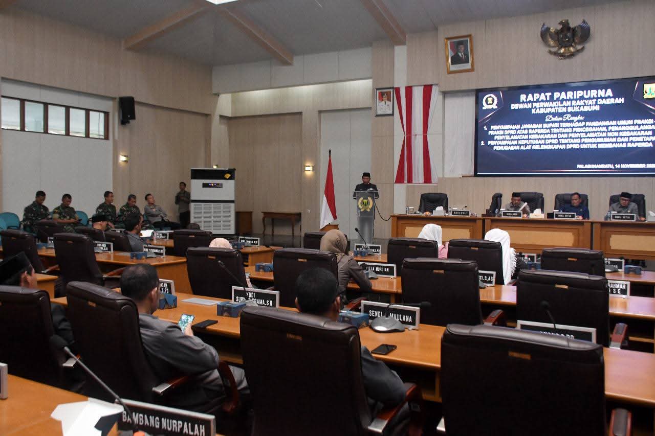 Sukabumi Kabupaten,Bossnewsmedia.com – DPRD Kabupaten Sukabumi menggelar rapat paripurna dengan agenda penyampaian jawaban Bupati terhadap pandangan umum fraksi-fraksi atas Rancangan Peraturan Daerah (Raperda) tentang Pencegahan, Penanggulangan, dan Penyelamatan Kebakaran serta Penyelamatan Non Kebakaran, di Ruang Rapat Paripurna DPRD, Jumat (14/11/2025).
