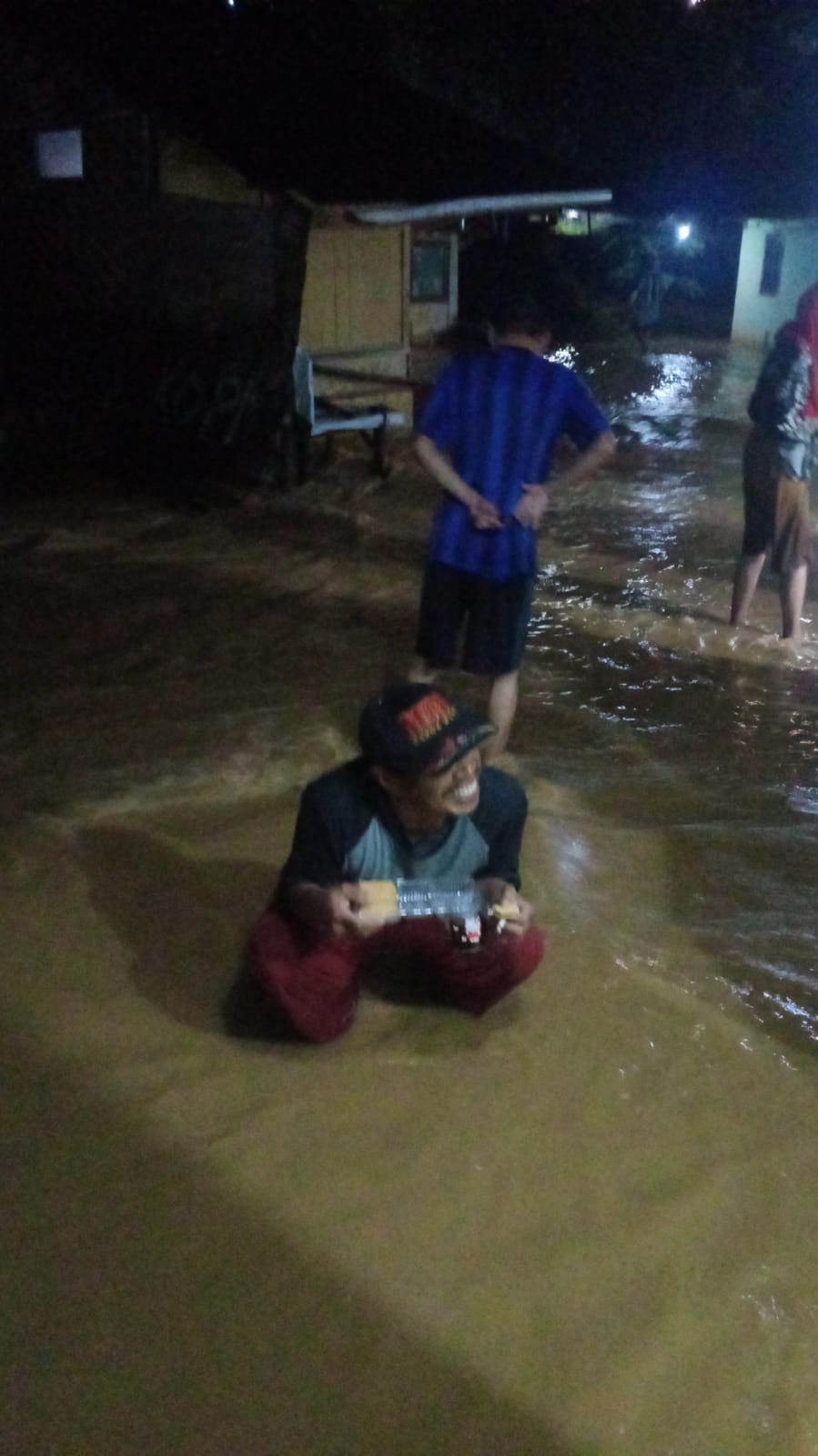 Salah satu warga yang berada dilokasi banjir tersebut Ade Setiawan yang akrab dipanggil pak Obom menyampaikan informasi bahwa kejadian banjir tersebut terjadi pada pukul 18.30 WIB.