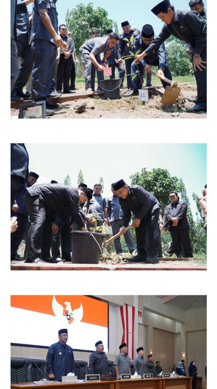 Usai rapat paripurna, pimpinan dan anggota DPRD bersama Bupati Sukabumi juga melaksanakan penanaman pohon di lingkungan Sekretariat DPRD Kabupaten Sukabumi sebagai bentuk kepedulian terhadap lingkungan.