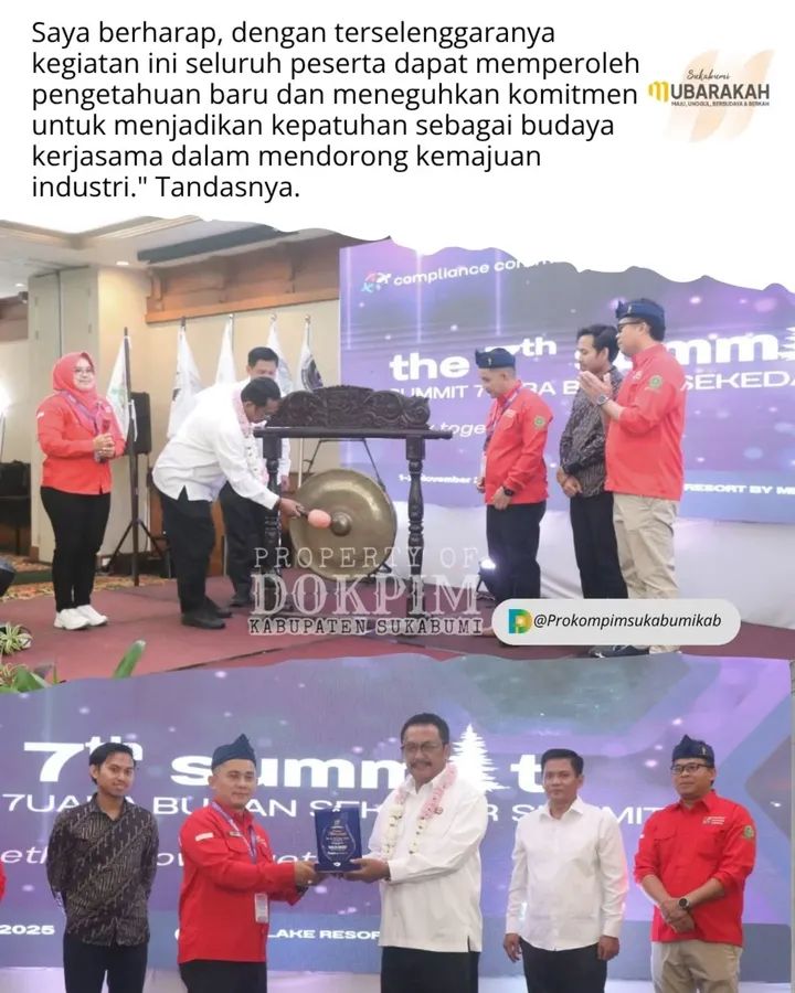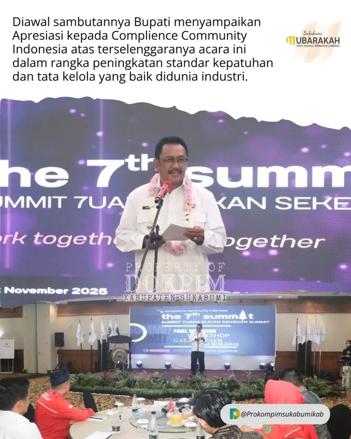 Sukabumi Kabupaten,Bossnewsmedia.com – Bupati Sukabumi H. Asep Japar Menghadiri sekaligus Membuka Secara Resmi acara 7th Complience Indonesia Summit 2025 yang ditandai dengan pemukulan gong, Bertempat di Lido Lake Hotel Cigombong Kabupaten Bogor, Sabtu (01/11/2025).