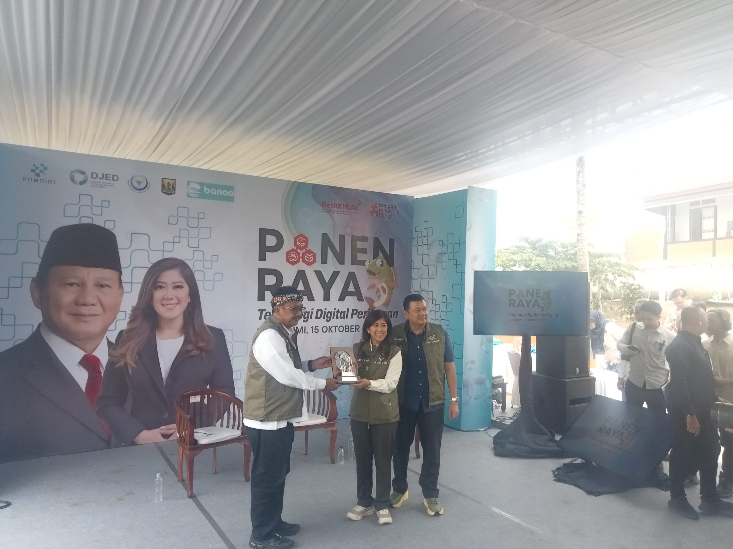Nampak hadir dalam panen Raya tersebut Bupati Sukabumi H Asep Japar,M.Si mengucapkan terimakasih kepada kementrian Komdigi atas teknologi digital untuk perikanan diwilayah kabupaten Sukabumi
