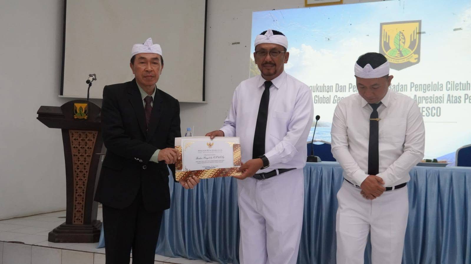 Dalam kegiatan yang diikuti juga Wakil Bupati Sukabumi H. Andreas, dilaksanakan juga penyerahan penghargaan kepada pihak yang Berkontribusi dalam Pengembangan dan revalidasi geopark.