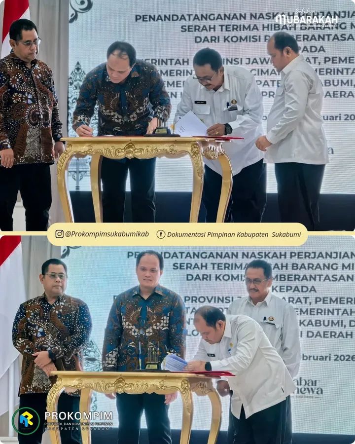 Subang,Bossnewsmedia.com – Bupati Sukabumi H. Asep Japar menghadiri penandatanganan naskah perjanjian dan berita acara serah terima hibah Barang Milik Negara (BMN) dari Komisi Pemberantasan Korupsi (KPK) RI. Bertempat di Aula Oman Sahroni, Sekretariat Daerah Kabupaten Subang, Rabu (11/02/2026).