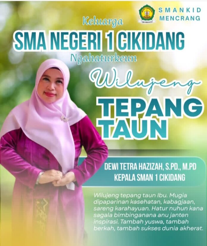 Sukabumi Kabupaten,Bossnewsmedia.com – Keluarga SMA Negeri 1 Cikidang Ngahaturkeun Wilujeng Tepang Taun Kepala Sekolah SMAN 1 Cikidang Dewi Tetra Hazizah,S.Pd,M.Pd.