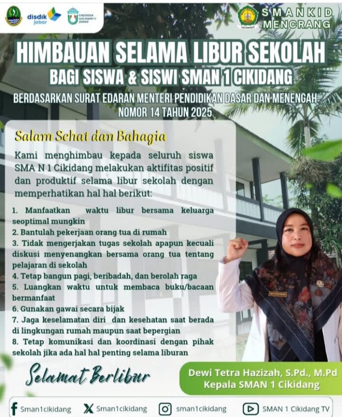 Sukabumi Kabupaten,Bossnewsmedia.com – Kepala Sekolah SMA Negeri 1 Cikidang Berikan Himbauan Bagi Siswa dan Siswi Selama Libur Sekolah.