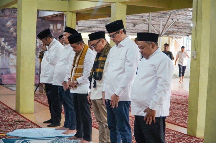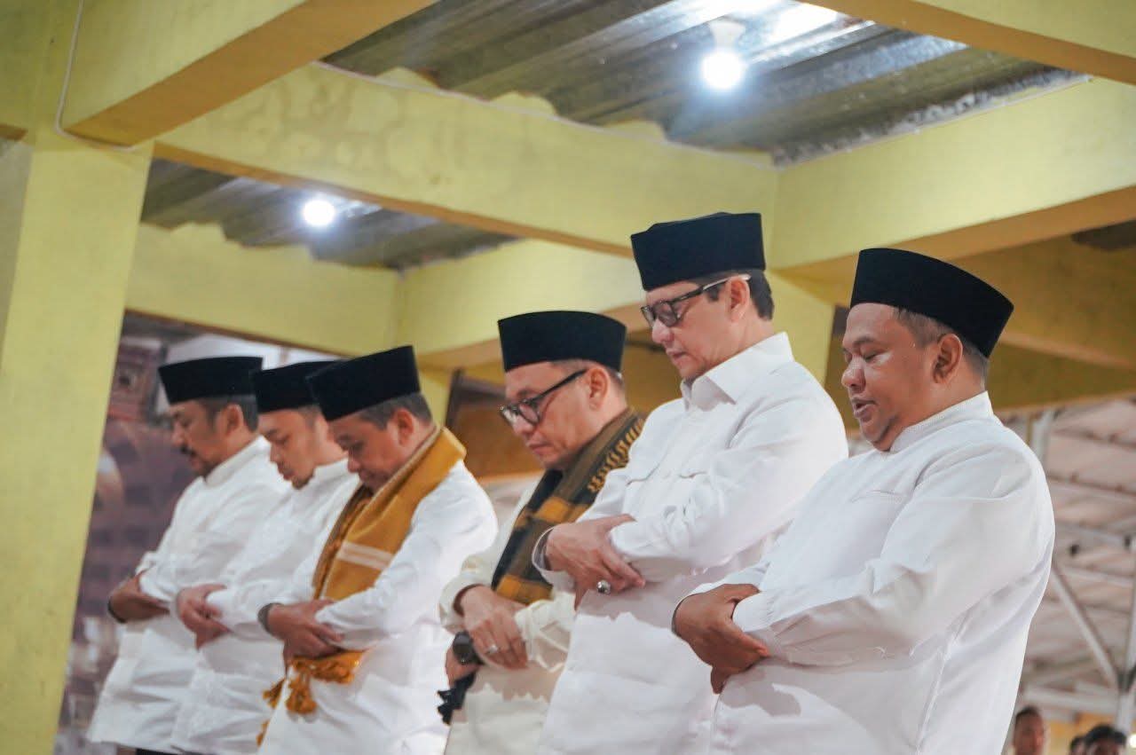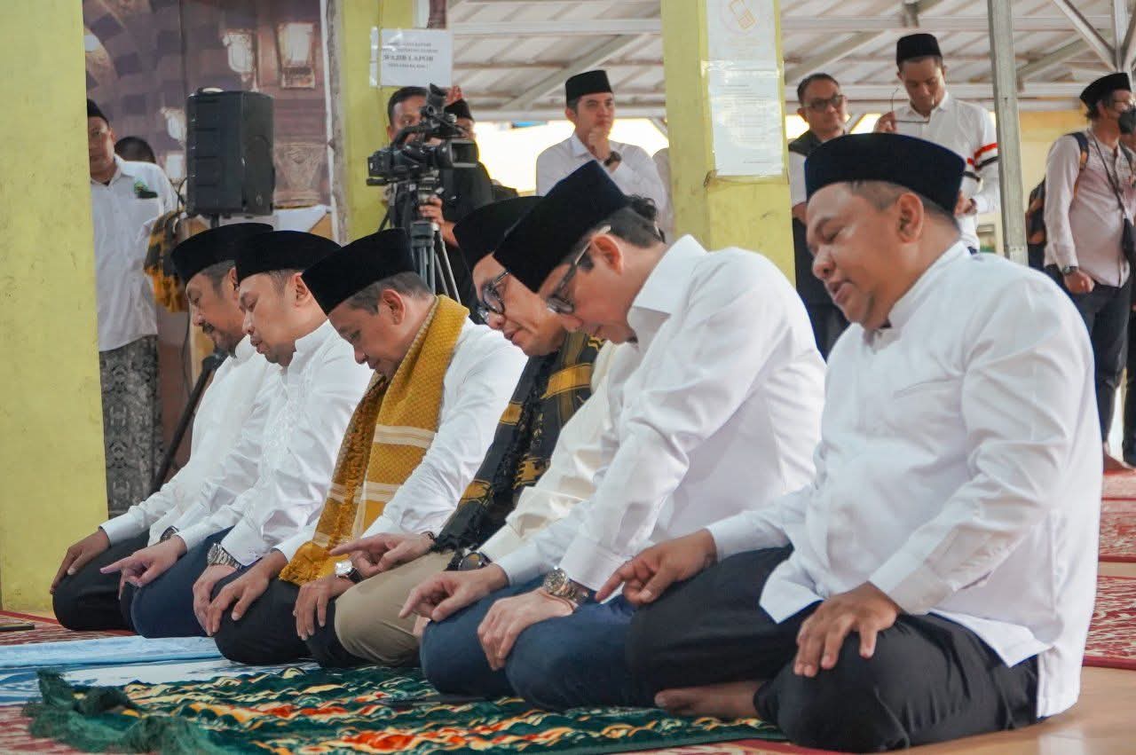 Ketua DPRD Kabupaten Sukabumi menunaikan shalat berjamaah di masjid bersama dengan Bupati dan wakil Bupati Sukabumi serta para pejabat lainnya.