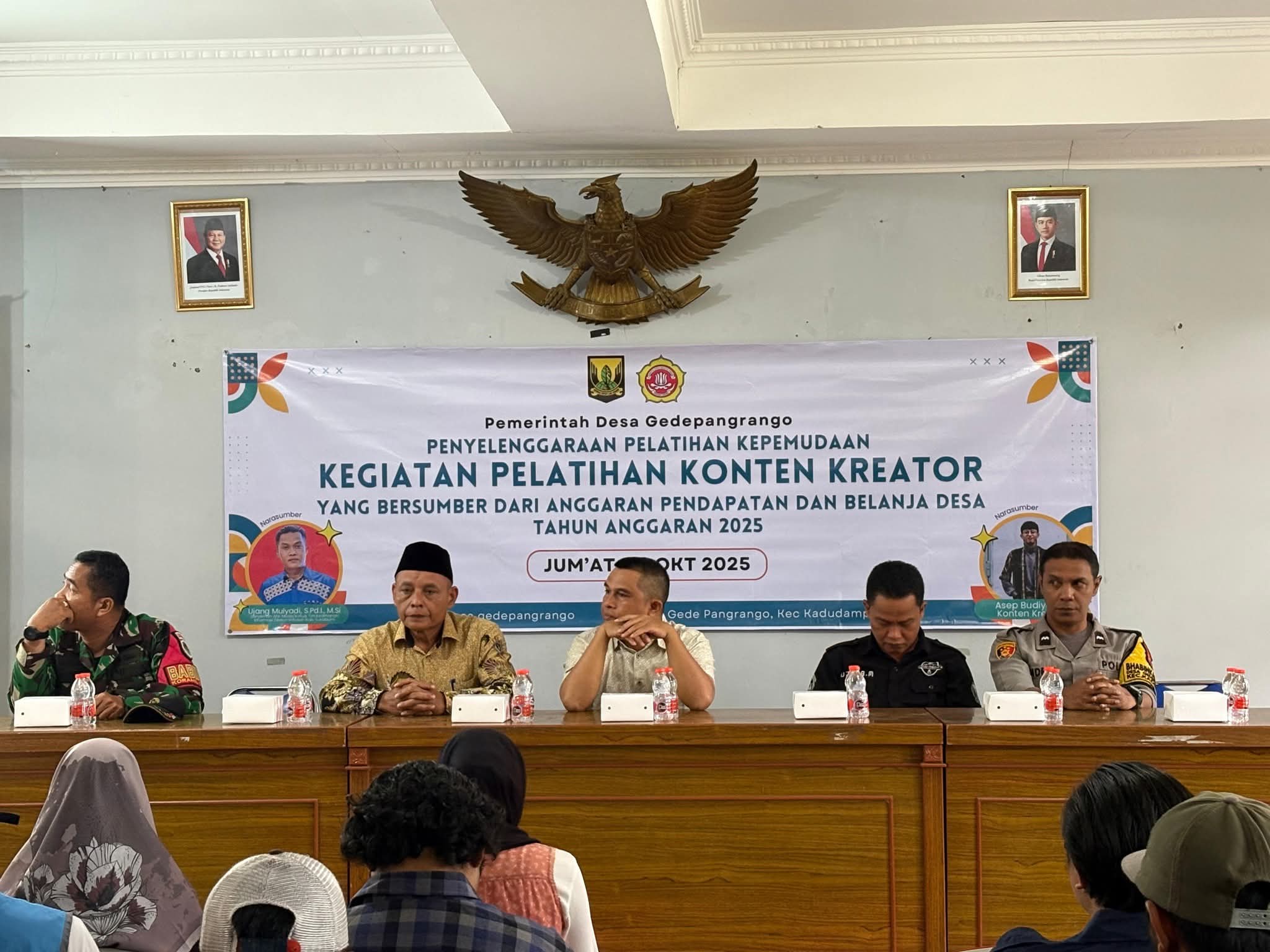 Pelatihan konten kreator untuk generasi muda. Acara berlangsung di Aula Desa Gede Pangrango, Jumat 24 Oktober 2025.