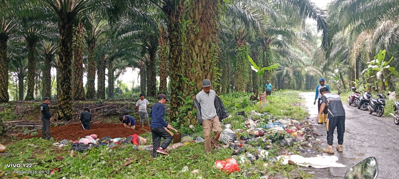 Sukabumi Kabupaten,Bossnewsmedia.com – Hari.ini, Rabu 14 Januari 2026 walaupun cuaca hujan deras tidak menyurutkan semangat Pemdes Bojonggaling dibantu Warga membersihkan sampah – sampah yang menggunung diwilayah kebun sawit pasirhaur, sampah – sampah tersebut ulah dari orang – orang yang tidak bertanggung jawab.