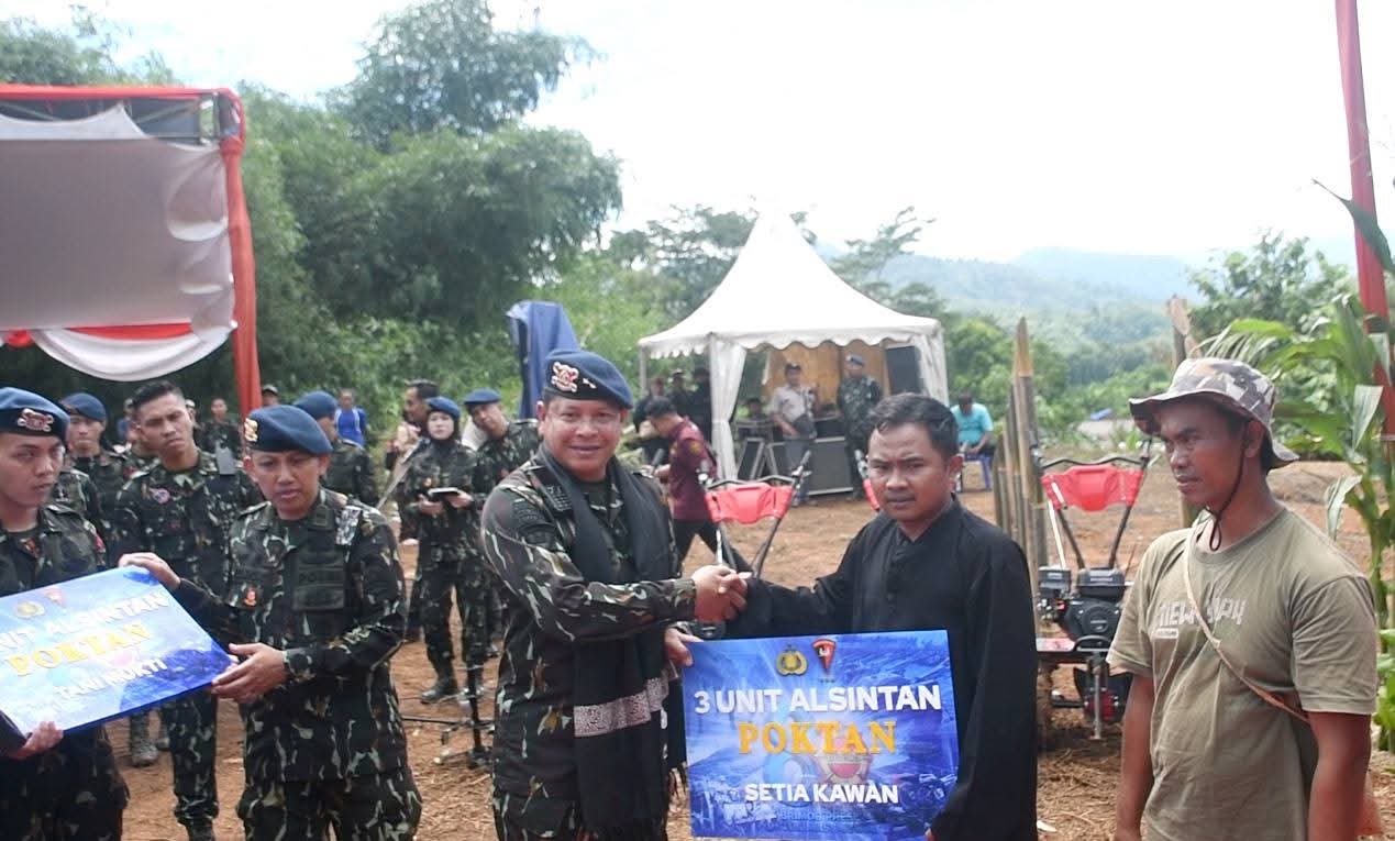 Sebanyak enam kelompok tani dari beberapa desa menerima bantuan masing-masing tiga unit alsintan. Selain itu, Brimob juga menyerahkan 204 kilogram benih jagung dan 200 paket sembako untuk masyarakat dan anak yatim piatu sebagai bentuk kepedulian sosial kepada masyarakat.