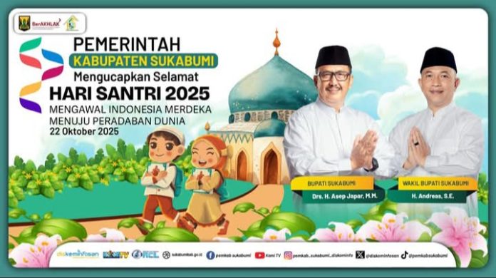 HomeIslamiPemkab Sukabumi Mengucapkan Selamat Hari Santri 2025 22 Oktober 2025 Islami Pemkab Sukabumi Mengucapkan Selamat Hari Santri 2025 22 Oktober 2025 By Irsan Riswandi - October 22, 2025 0 12 FacebookTwitterPinterestWhatsApp Sukabumi Kabupaten,Bossnewsmedia.com – Pemkab Sukabumi Mengucapkan Selamat Hari Santri 2025 22 Oktober 2025. Rabu,(21/10/25). Red FacebookTwitterPinterestWhatsApp Previous articleBupati Sukabumi Lantik Ketua FKUB Dan Minta Membangun Sinergi dan Harmoni Dalam KeberagamanNext articleDPRD Kabupaten Sukabumi Mengucapkan Selamat Memperingati Hari Santri Nasional 2025 ” Mengawal Indonesia Merdeka,Menuju Peradaban Dunia “ Irsan Riswandi Related Islami Ketua DPRD Kabupaten Sukabumi, Budi Azhar Mutawali, S.IP, Hadiri Upacara Peringatan Hari Santri Tingkat Kabupaten Sukabumi Tahun 2025 di Gelanggang Cisaat Islami DPRD Kabupaten Sukabumi Mengucapkan Selamat Memperingati Hari Santri Nasional 2025 ” Mengawal Indonesia Merdeka,Menuju Peradaban Dunia “ Islami Bupati Sukabumi Hadiri Pelantikan Pengurus Ranting Istimewa NU Pasar Cicurug Masa Khidmat 2025 – 2028 LEAVE A REPLY Cancel reply Comment: Please enter your comment! Name:* Please enter your name here Email:* You have entered an incorrect email address! Please enter your email address here Website: Save my name, email, and website in this browser for the next time I comment. Trending Pembentukan Forum Silaturohmi ORMAS, OKP DAN LSM kecamatan Bojonggenteng Berjalan lancar dan Sukses March 16, 2023 Diduga Demi Untung semata Oknum Manajer PLN UPJ Palabuhanratu Sengaja Pasang Kabel Salah Spek Tech Bentangan Kabel SRT Ukuran 2 Kali 10 Sepanjang 400... March 25, 2025 Pepen Supendi Menjadi Calon Kuat Ketua DPC PAMDI Kabupaten Sukabumi January 15, 2025 Gerak Cepat Iman Adinugraha, SE.,,Akt Anggota DPR-RI Fraksi Demokrat Bantu Bangun Infrastruktur Kecil Di Gobang Desa Pasirsuren kecamatan Palabuhanratu February 15, 2025 Kades Parungkuda Kedatangan Kuasa Hukum Masyarakat Minta Pasilitasi Audensi Dengan PerusahaanTerkait CSR PT.Nina 2 May 10, 2023 Masyarakat Komunitas Peduli Atas Fasilitas Pemerintah Perbaiki Jalan di Pasir Reungit Cidahu May 14, 2024